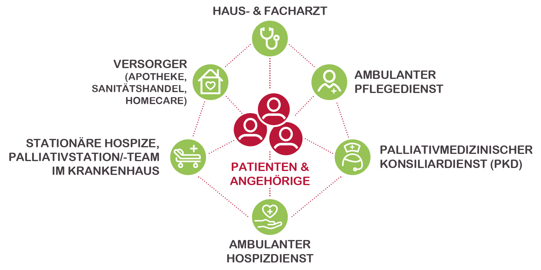 Menschen, die schwersterkrankt sind und am Lebensende zu Hause verbleiben möchten, brauchen Ansprechpartner, Versorgungsangebote und Informationen, um schmerz-, sorgenfrei und in Würde den Lebensabschied erleben zu dürfen.